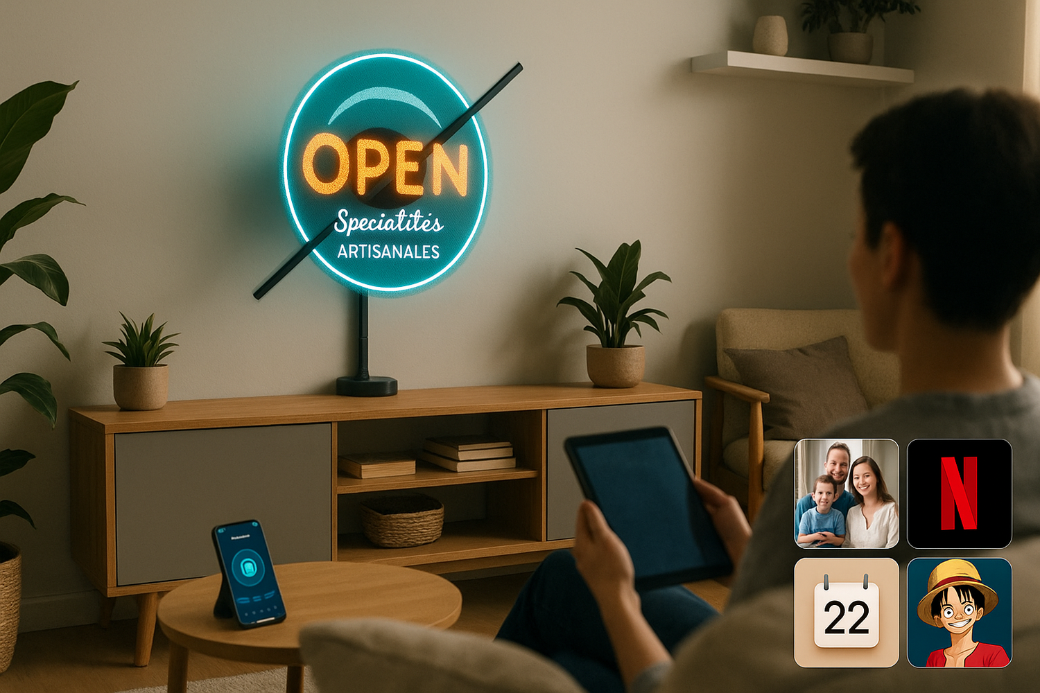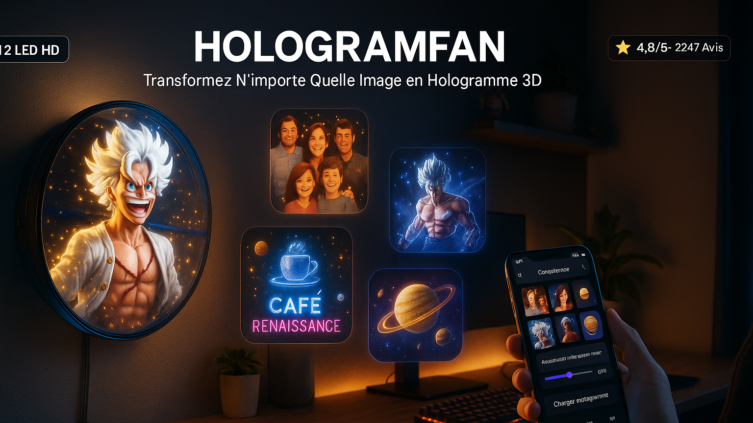 Nos clients utilisent l’hologramFAN 3D dans leur salon, leur chambre ou leur setup gaming. Résultat : un effet “wahou” garanti à chaque fois que quelqu’un entre dans la pièce.